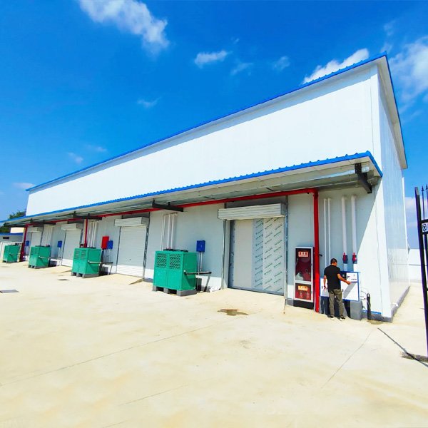 The cold storage building is equipped with advanced refrigeration systems to maintain stable internal temperatures: